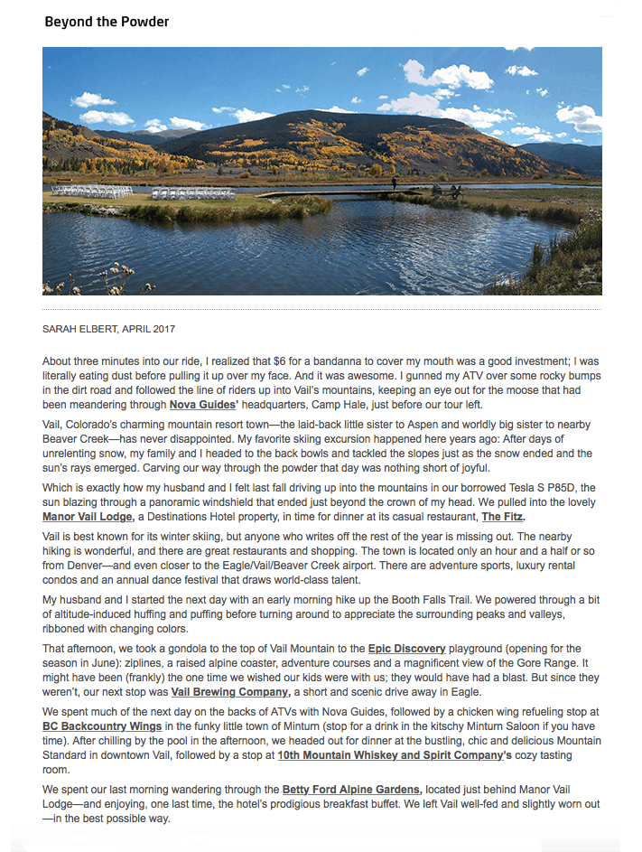 We take your business to the pages of today’s most sought after magazines, newspapers and websites. Results are what drive our Colorado PR agency – it’s about the right placement, in the right outlets at the right time. From a front of the book placement in a magazine to a digital placement that supports referral traffic, we elevate our clients’ brands through impactful coverage.